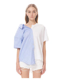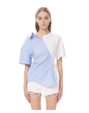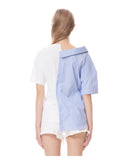 - 藍白梭織條子布及白色針織平紋布拼接上衣